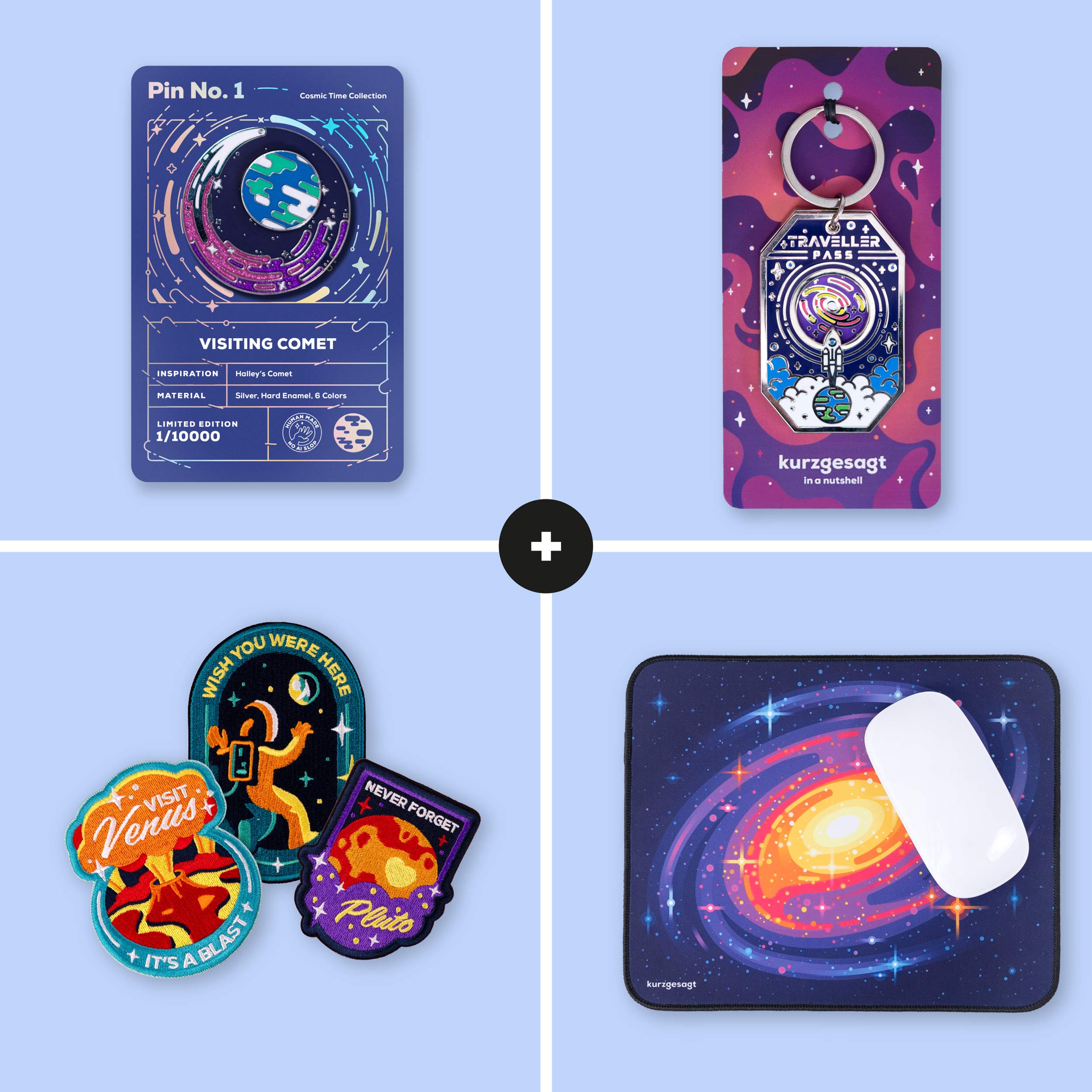 After months of designing, sampling, and testing, we've created a mesmerizing pin that's as satisfying to fidget with as it is beautiful to wear. The Earth and backing plate stays firmly put, while the comet spins freely.