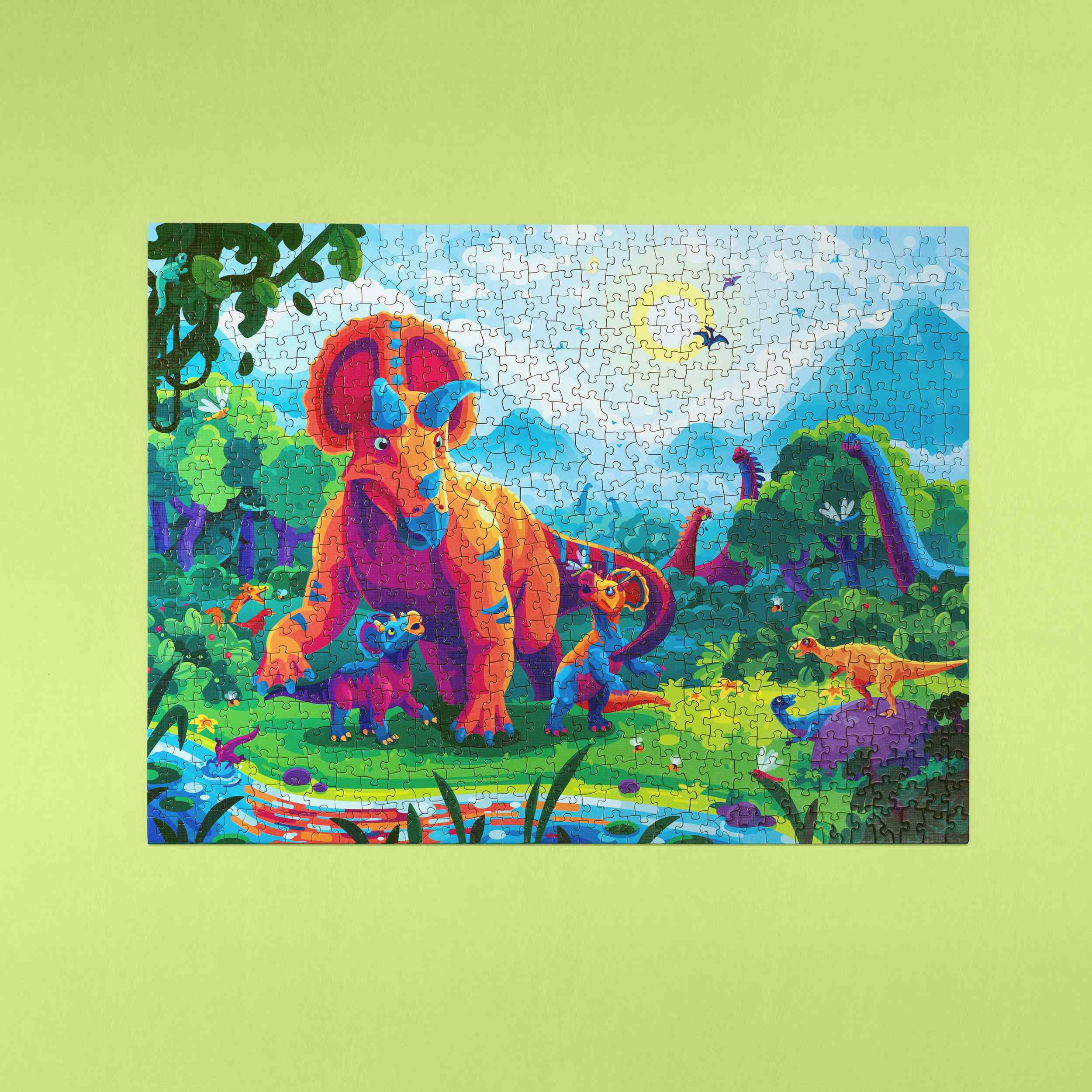 Which dinosaurs can you spot? What dangers could be lurking? Uncover stories and secrets in this idyllic prehistoric scene.