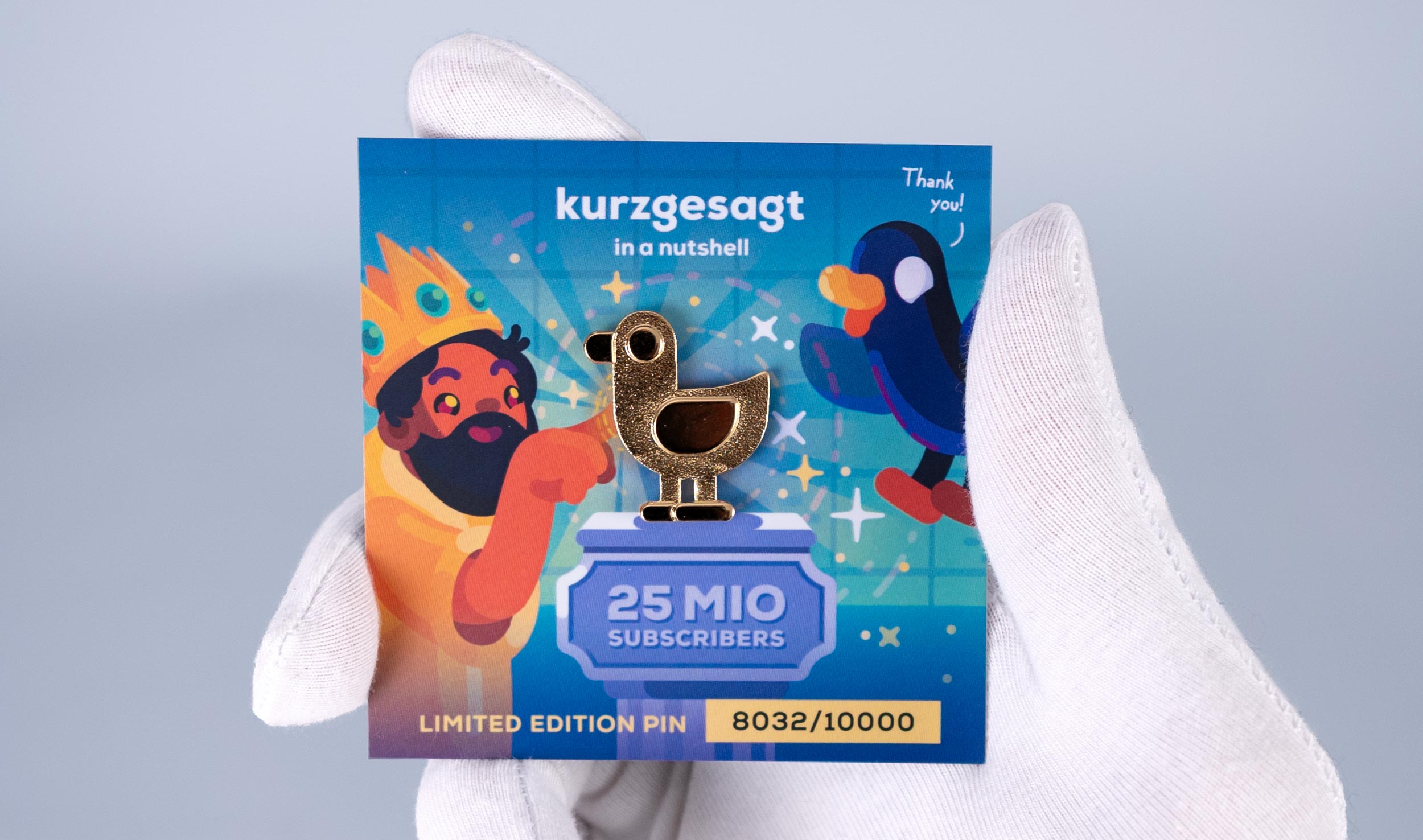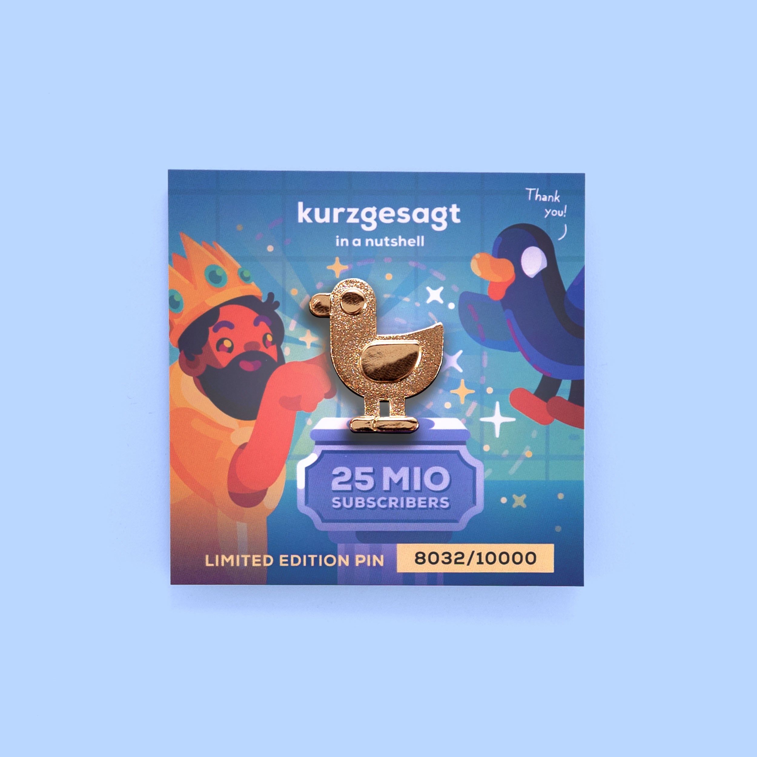 Created by the kurzgesagt birbs and a finishing touch from Midas, this limited edition pin is both golden and glorious. For Duck's special details, we've used a mixture of smooth and rough gold-plating.