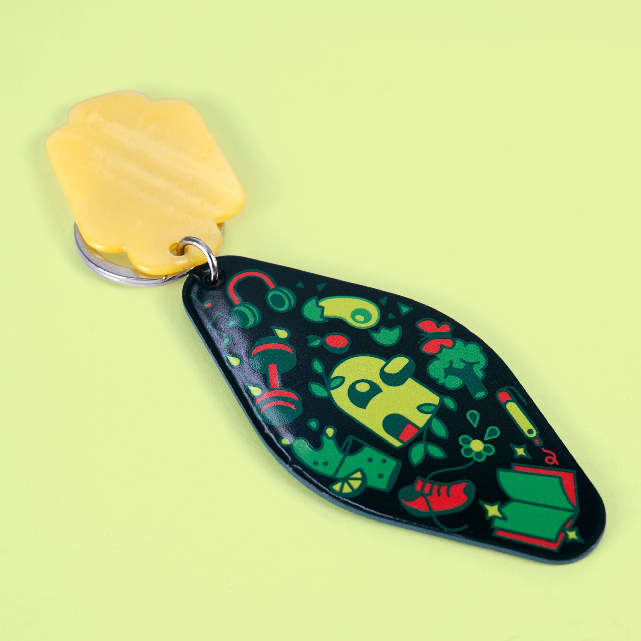 This keychain features two vibrant enamel charms, each made with acrylic and pearlescent effects. Use it as your tiny daily reminder that you're doing your best.