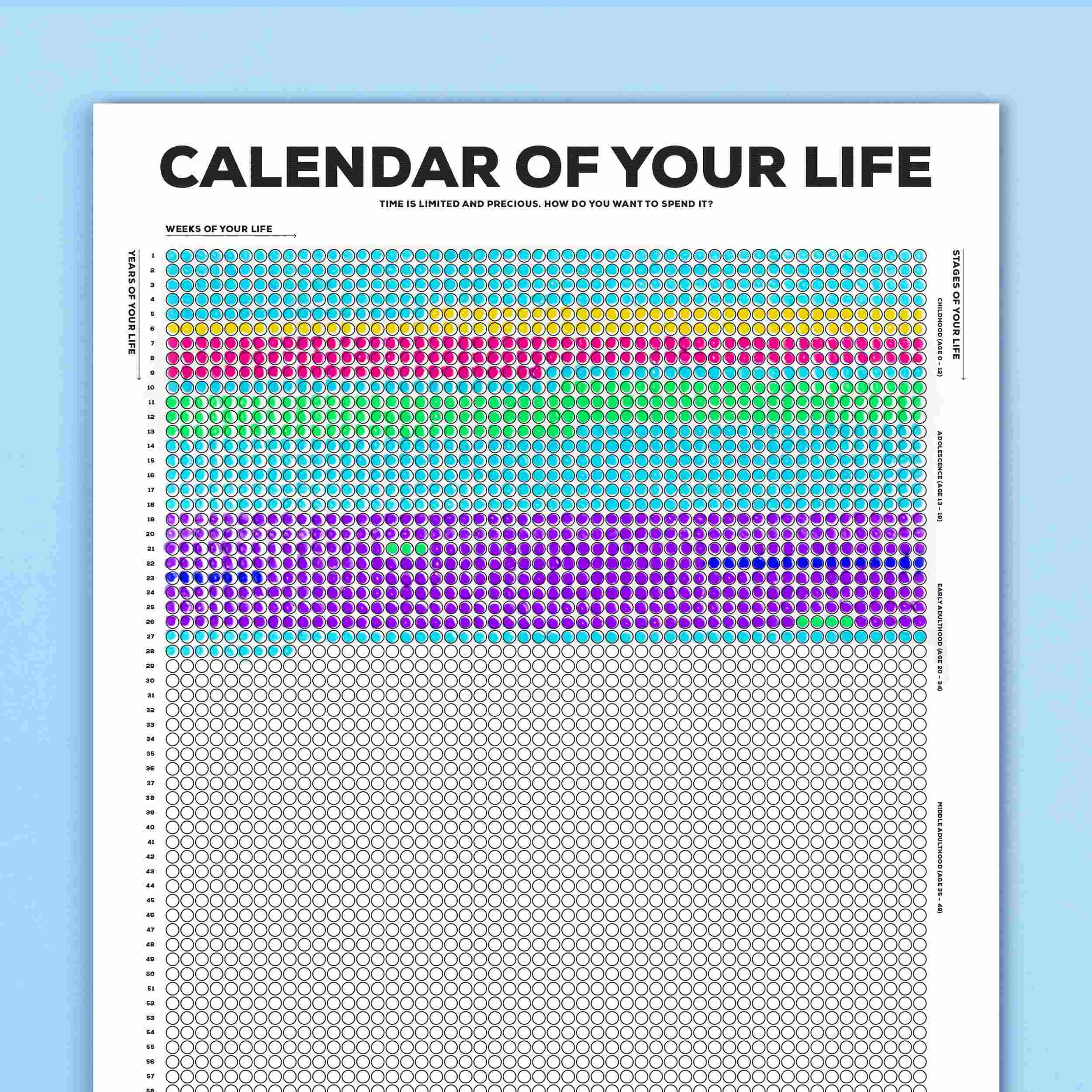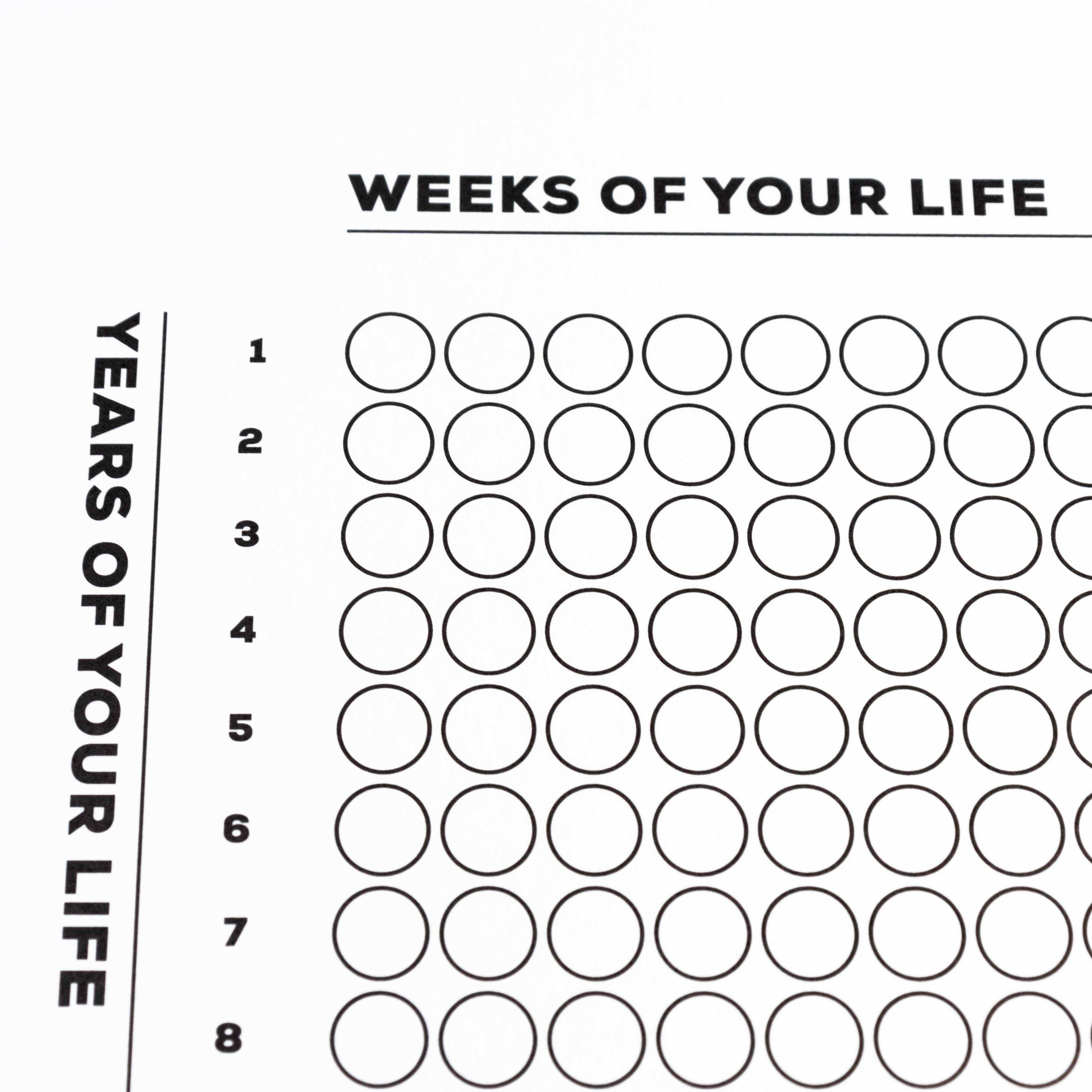 Simply track the weeks of your life by crossing them out, drawing colorful patterns, or by marking important events with stickers. This poster's design is all yours!