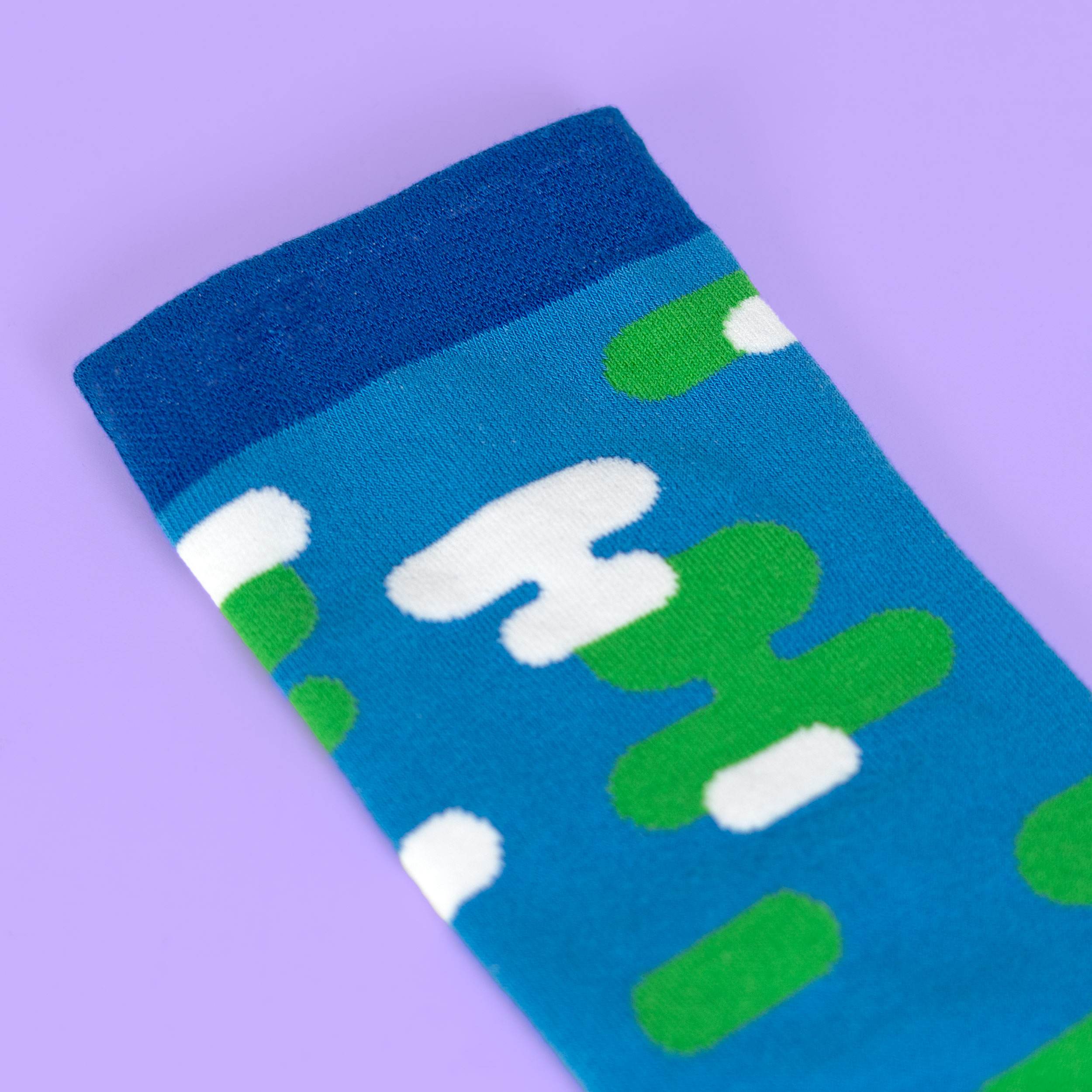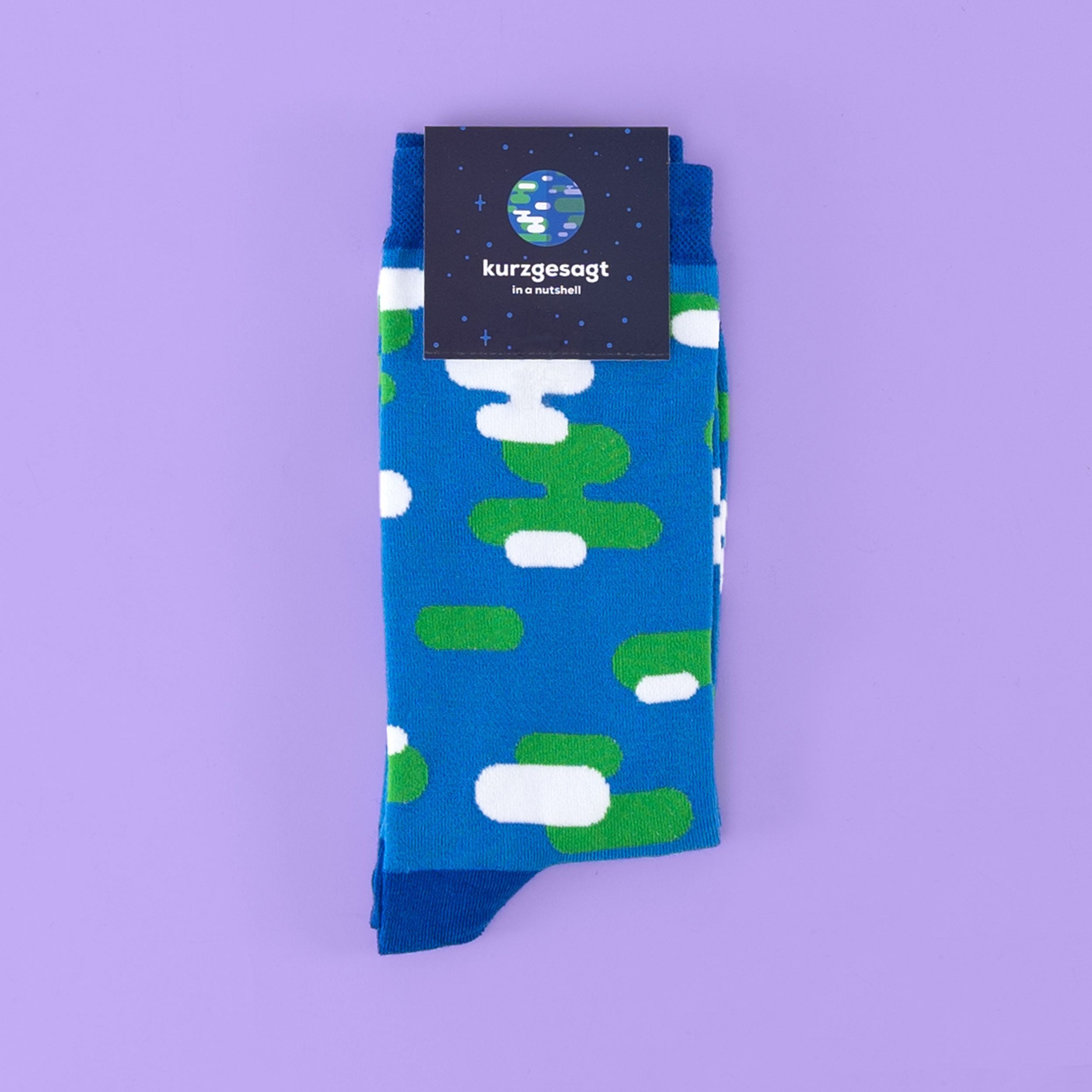 • Colorful, unisex socks with a woven kurzgesagt earth pattern