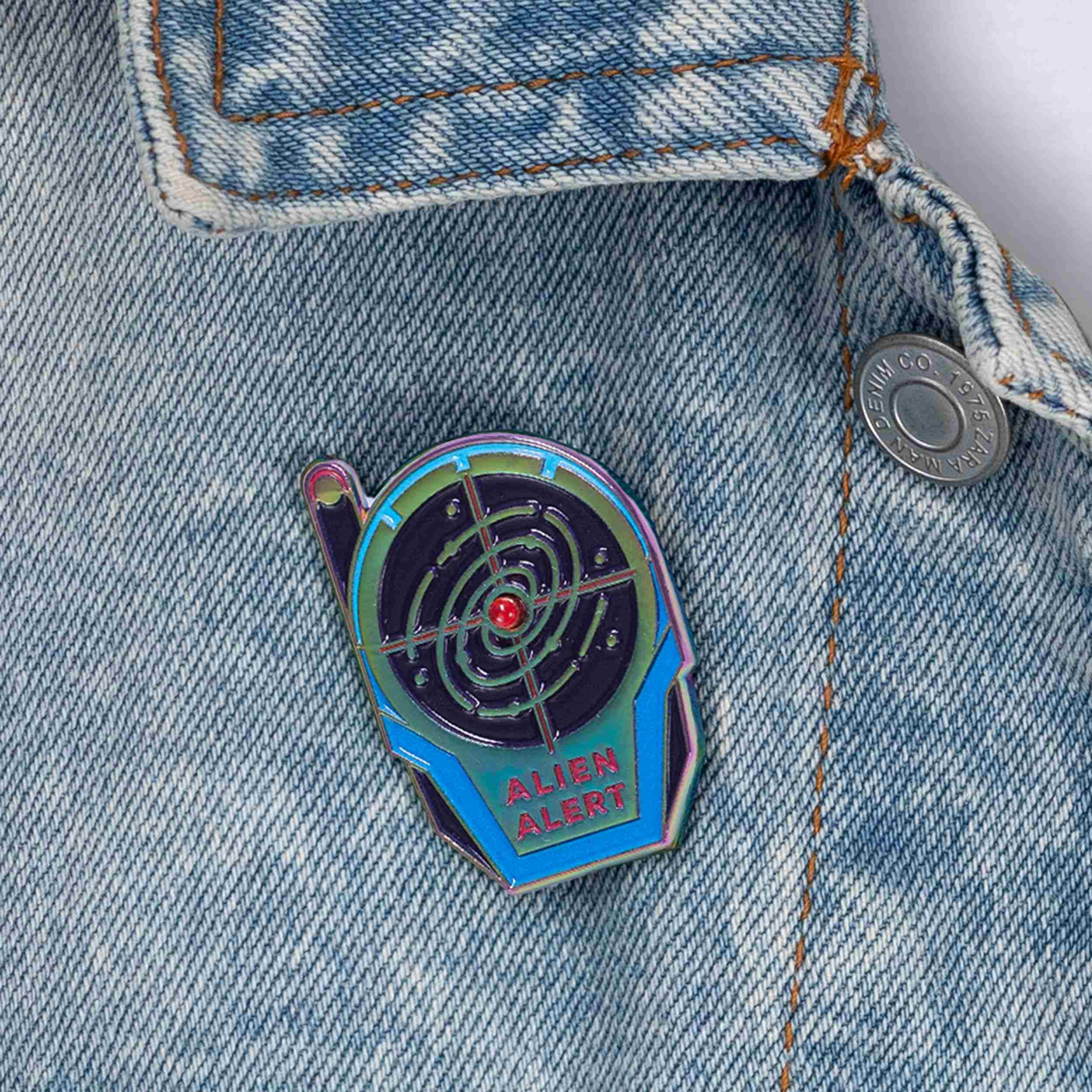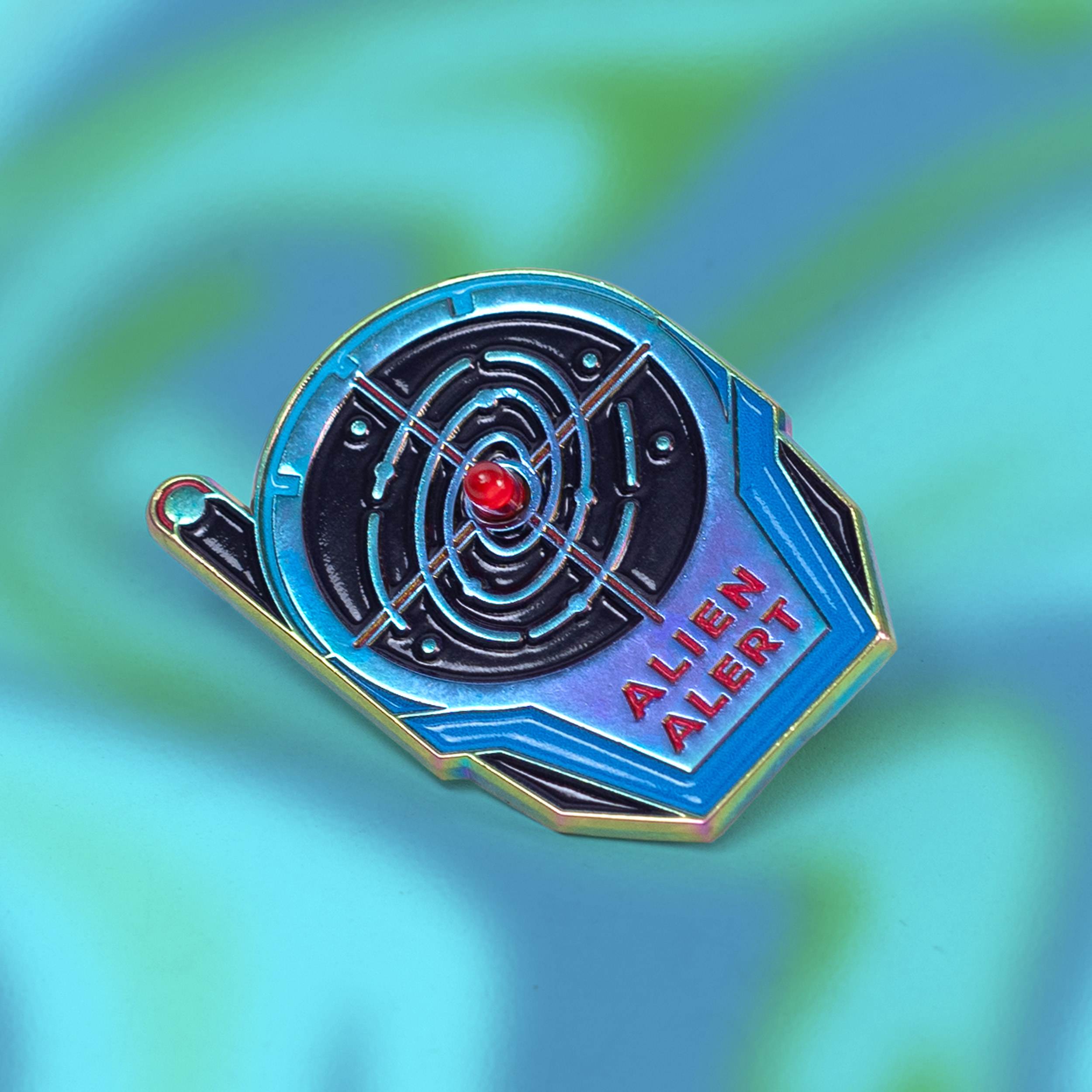 The fate of humanity may rest on your jacket. The Alien Alert Pin is a shiny, iridescent signal beacon – limited edition, mission-critical, and available only until August 22 12,025.