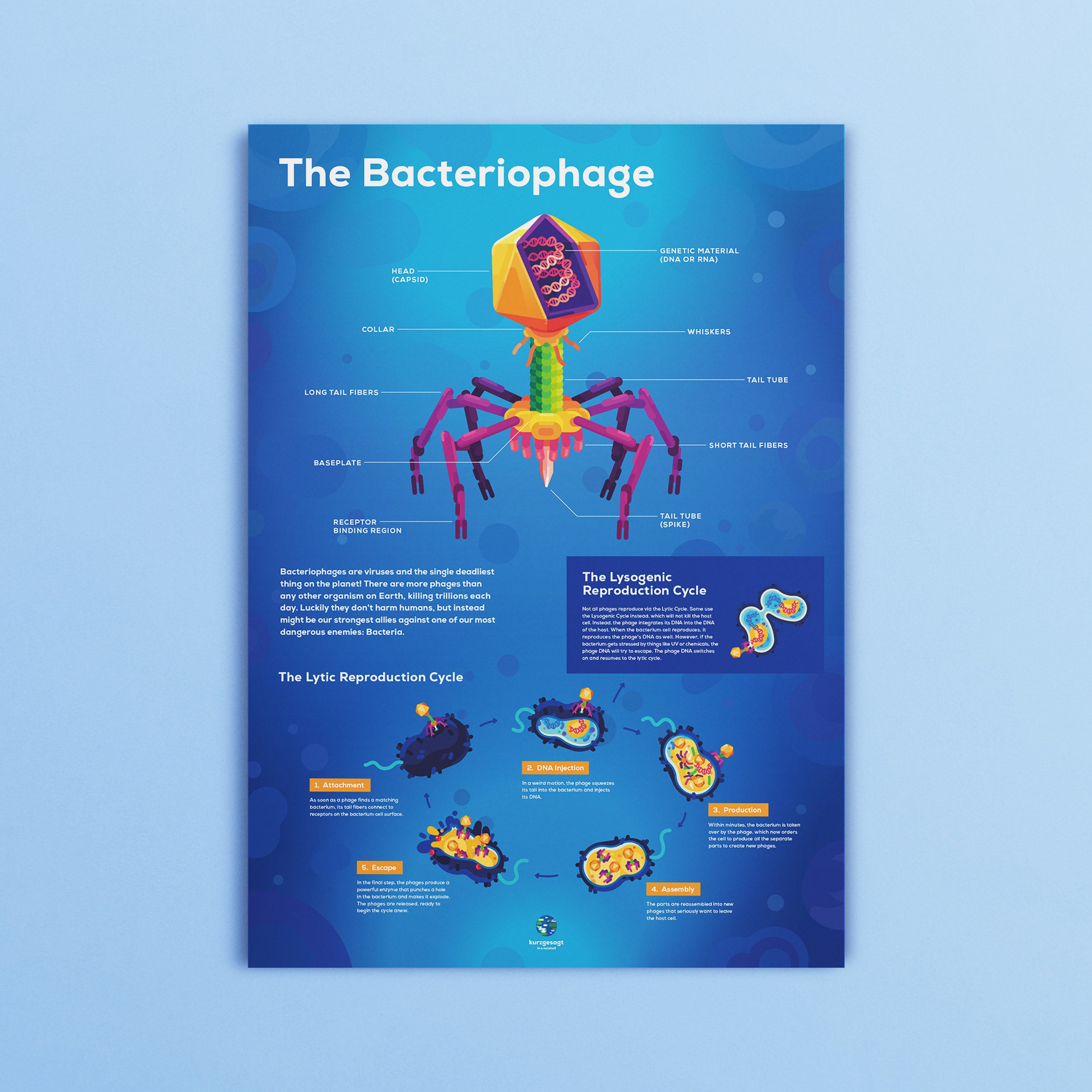 Bacteriophages are viruses and the single deadliest thing on the planet! They are responsible for trillions of deaths each day. Learn all about them with this poster.