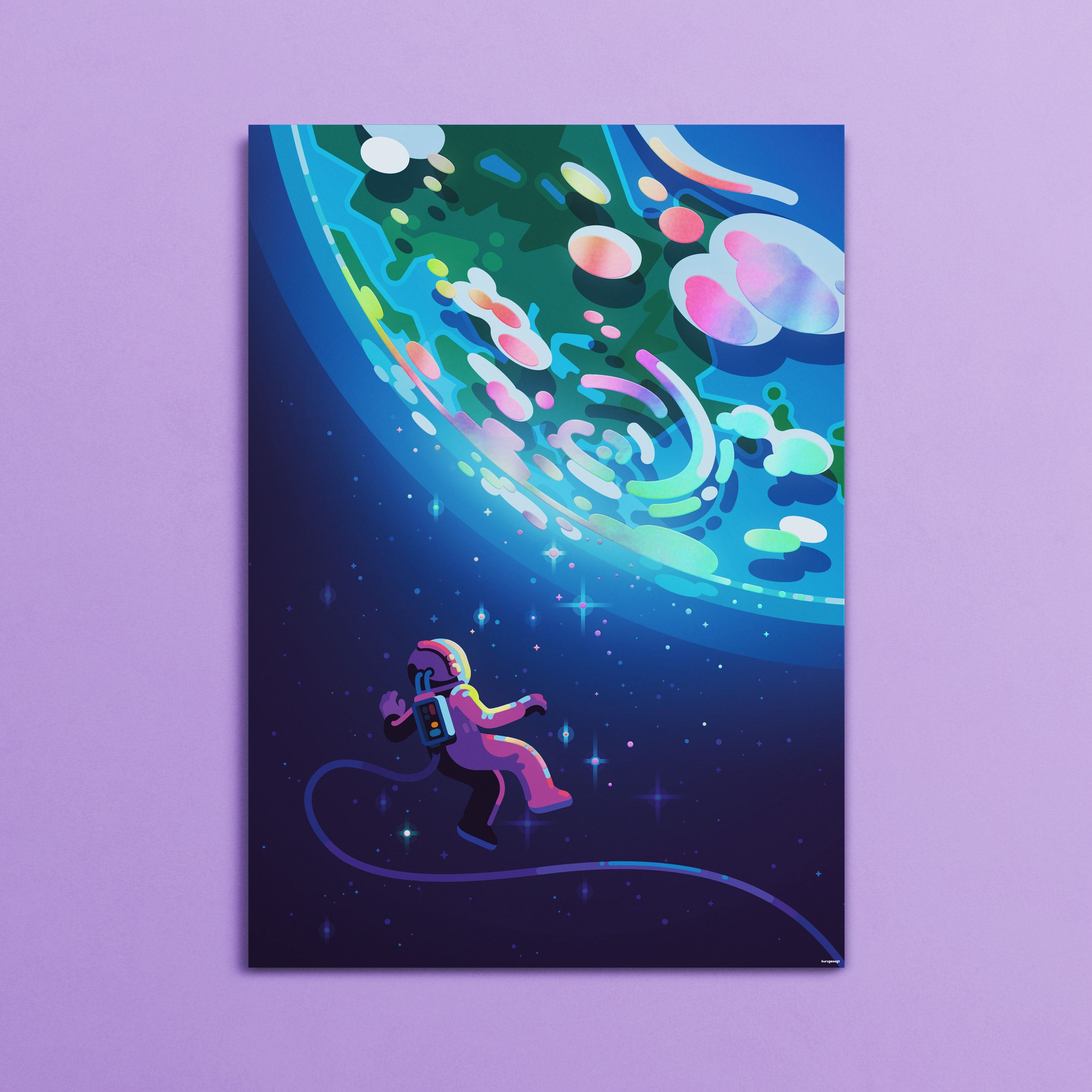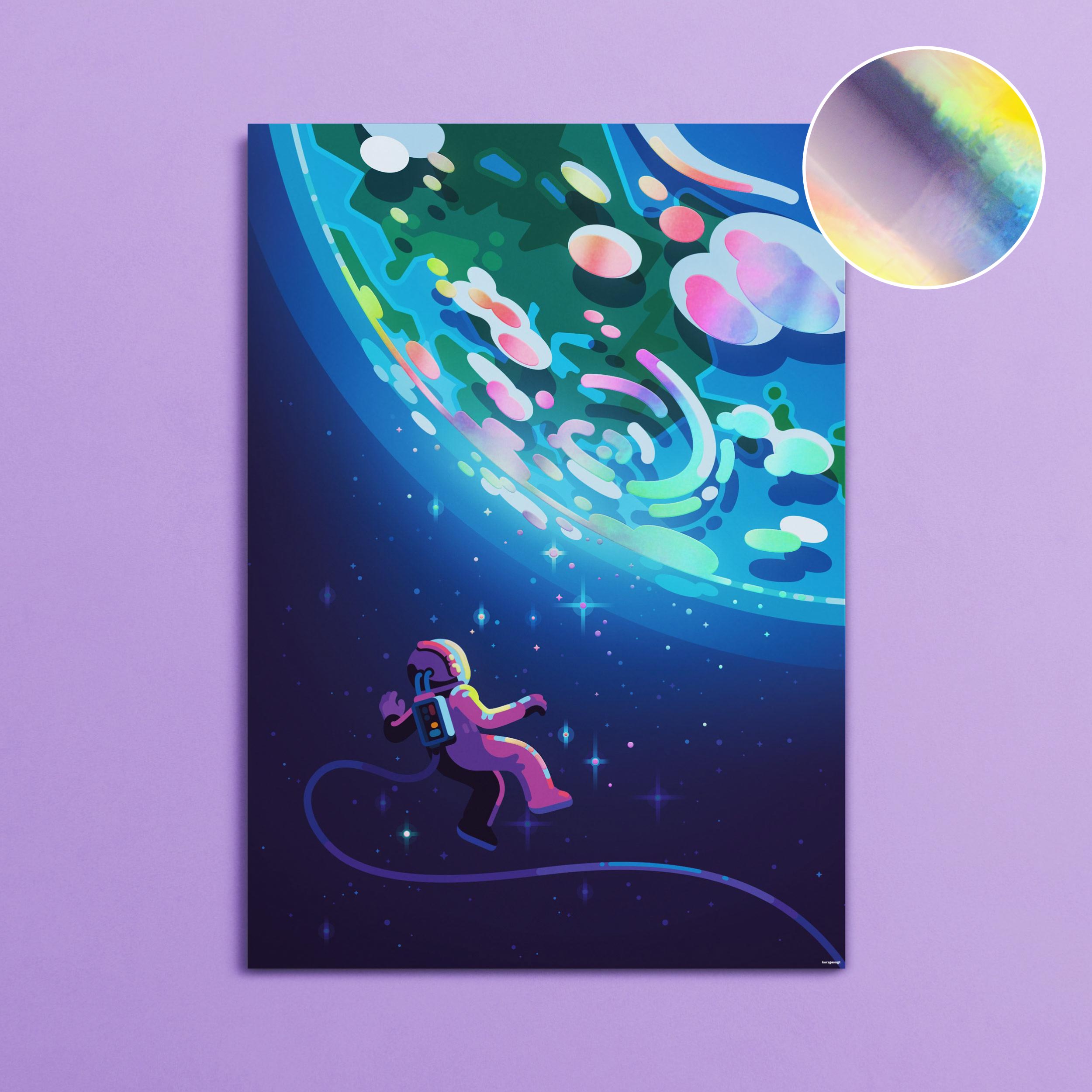 Printed with a shiny, holographic foil finish, this poster will be the sparkling star of any wall. The dreamy silver and rainbow-colored shine is even prettier in reality.