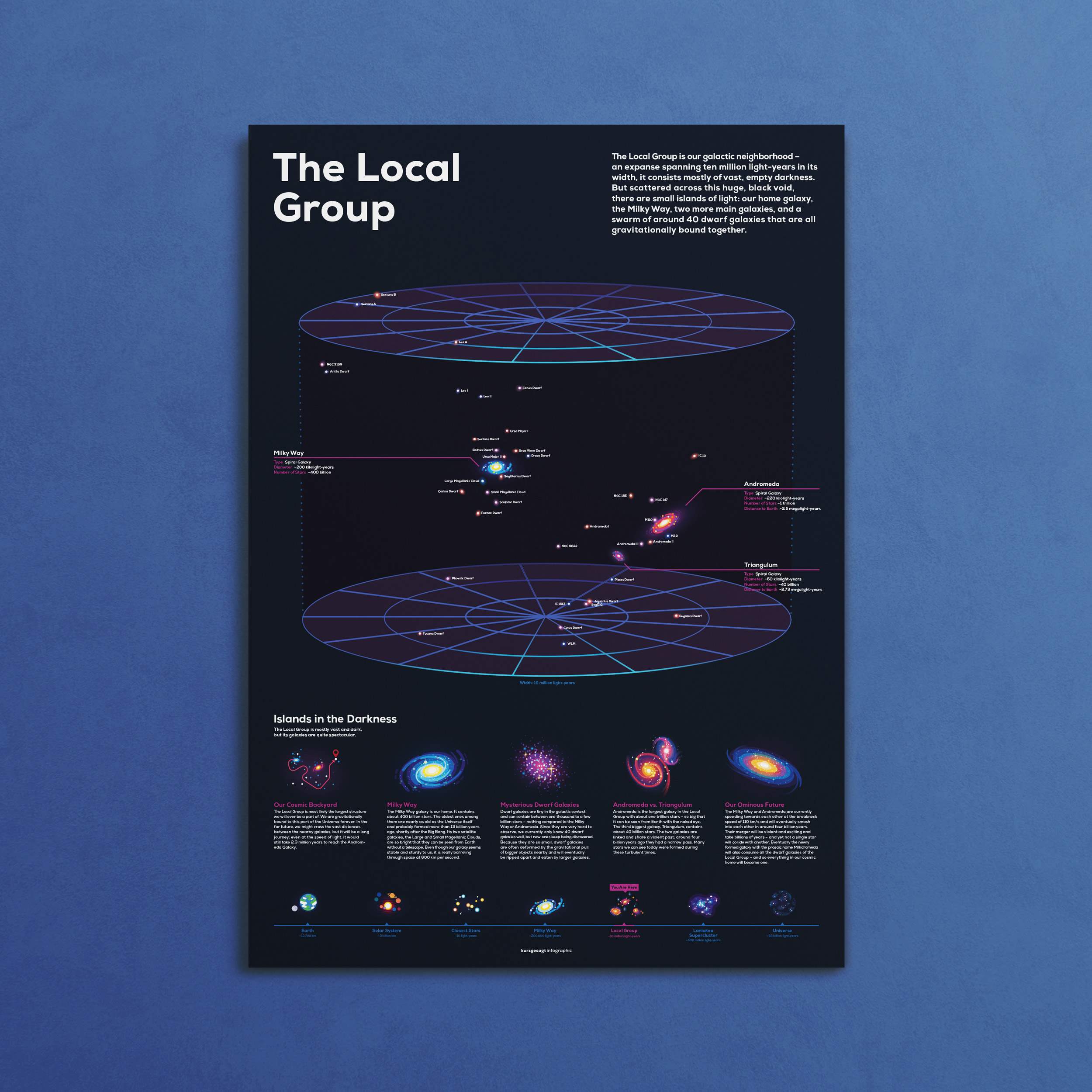Learn all about the Local Group – a huge, black void with a diameter of ten million light-years that is interspersed with small island of light.