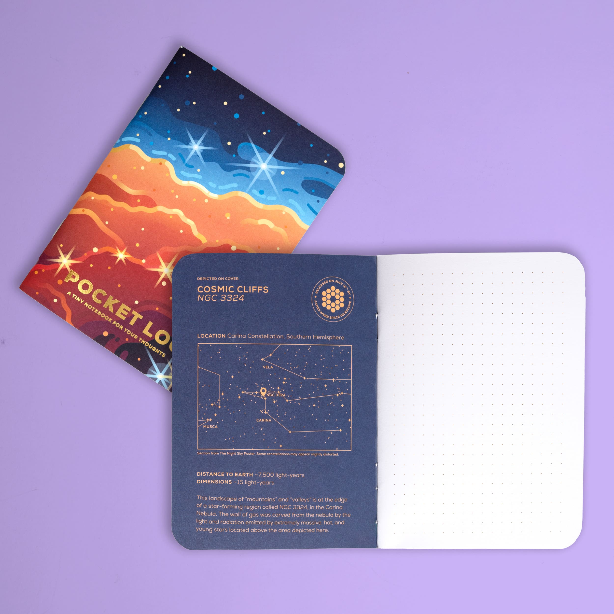 Take these tiny notebooks with you wherever you go and use them whenever you feel inspired. This collection is inspired by the images taken by the James Webb Telescope.
