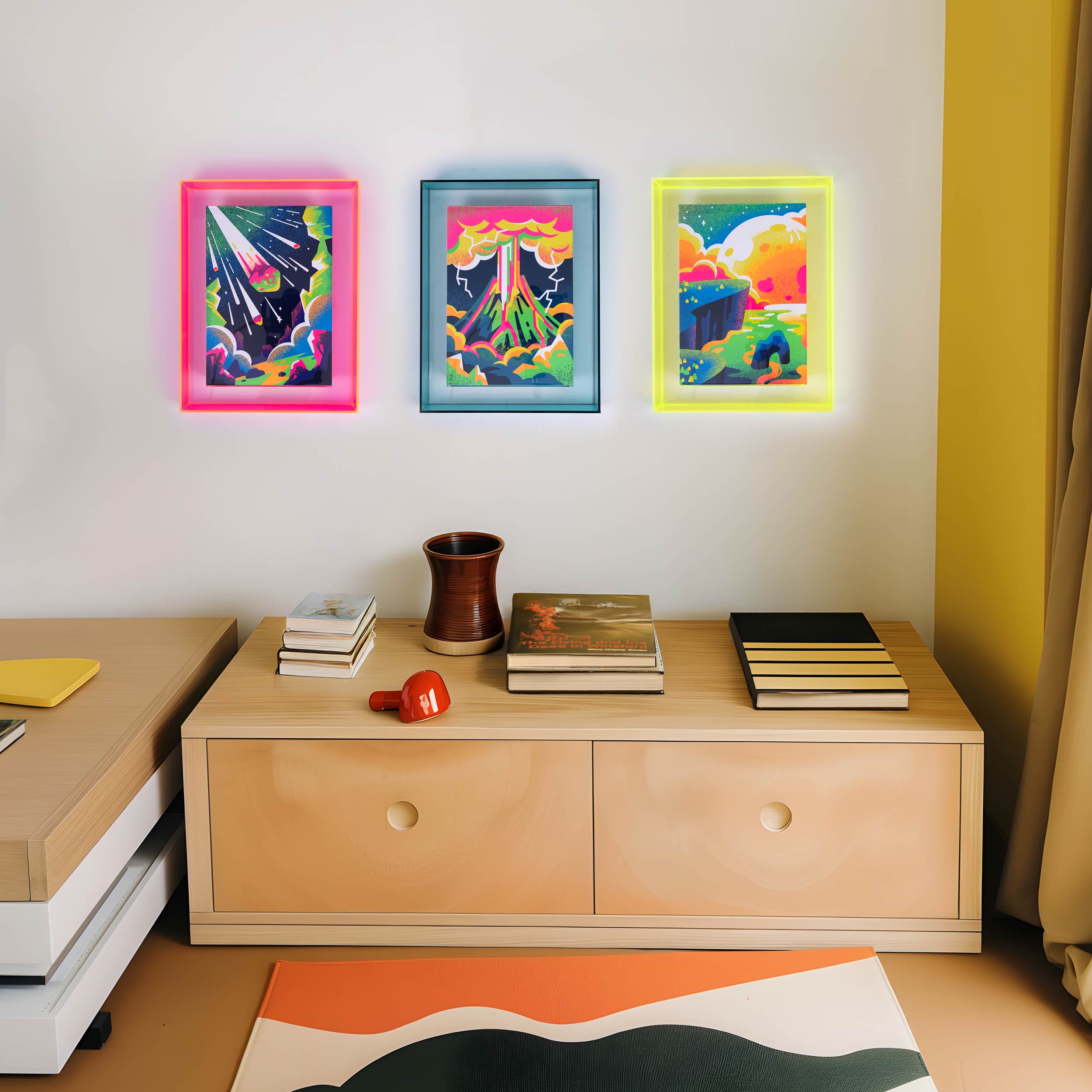 Looks stunning alone, or even better alongside its neon-framed counterparts. Display as the full stylish trio for maximum cosmic vibes.