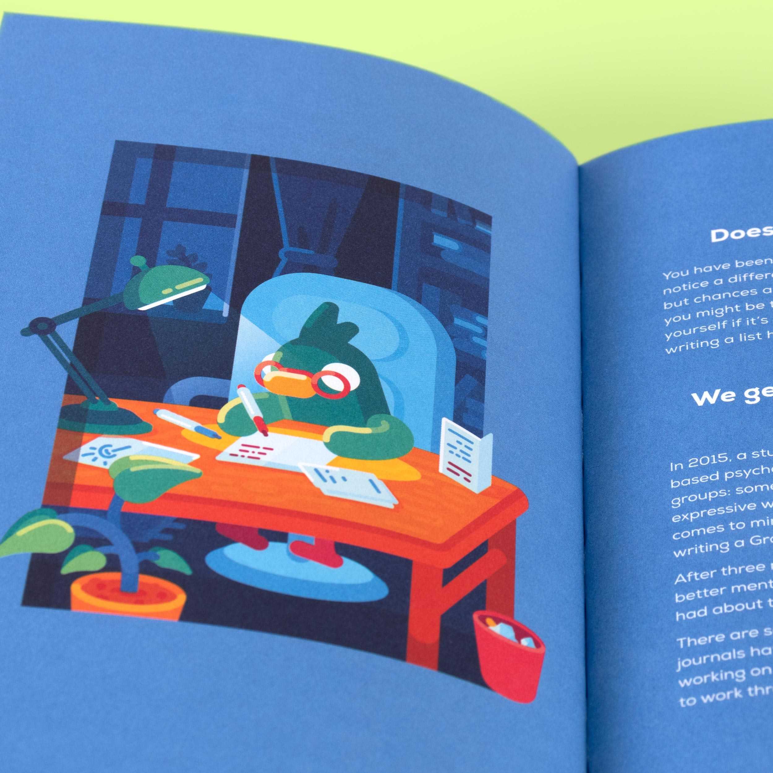 This is a kurzgesagt Gratitude Journal, so of course we made it as pretty as we could. It features lots of colorful illustrations and cute details to fill your Gratitude journey with happiness.