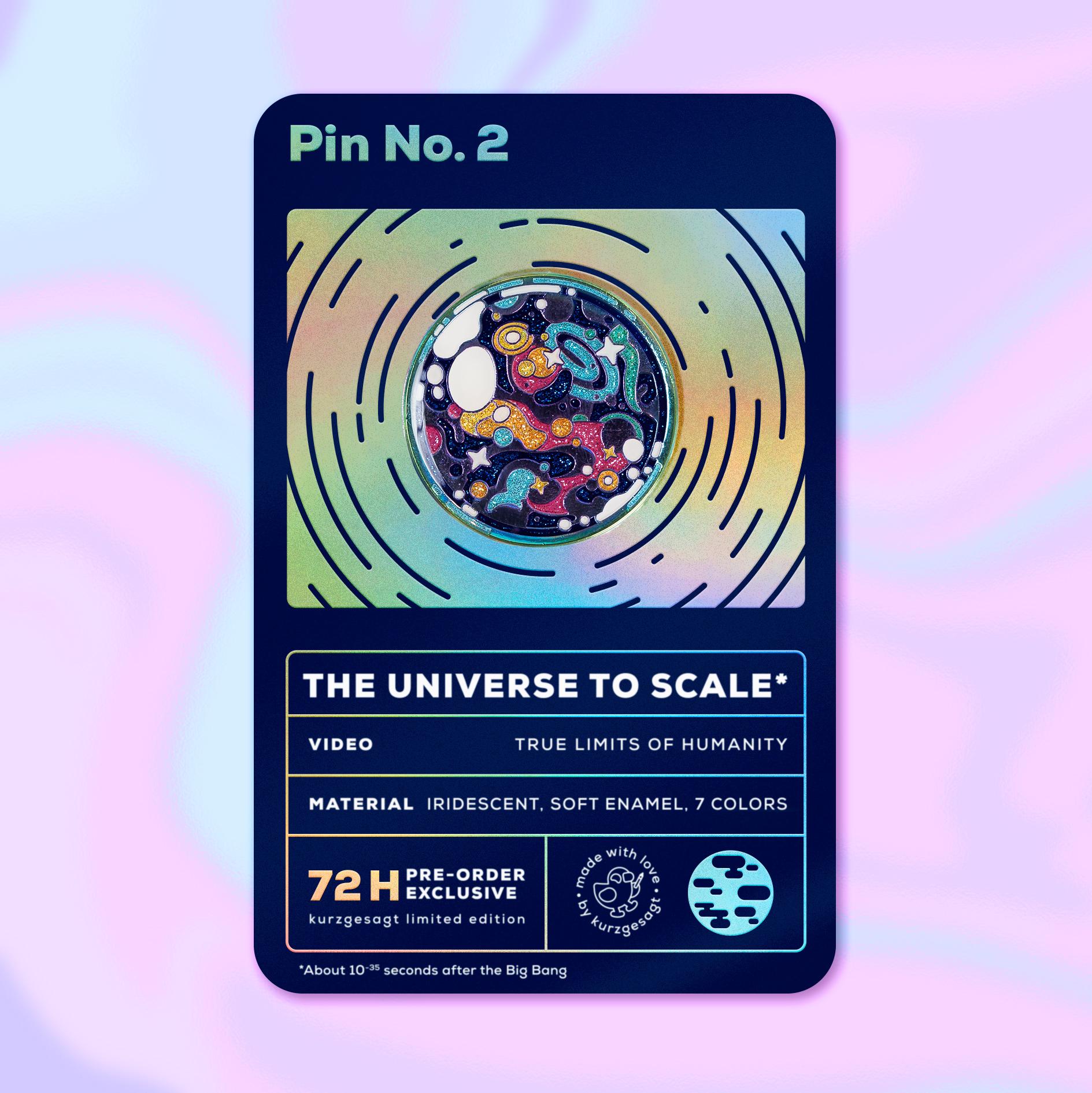 It’s our Universe – To Scale! About 10^-35 seconds after the Big Bang, the observable Universe was only the size of a marble before it started to expand. Inspired by this marvellous moment in time, we created this pin so that you can carry the whole Universe with you on your jacket or backpack.