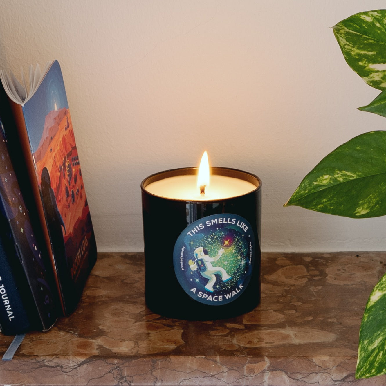 Astronauts returning from a space walk reported smoky, metallic, and sweet notes. We've been able to recreate this scent profile as a warm, comforting aroma that's out of this world.