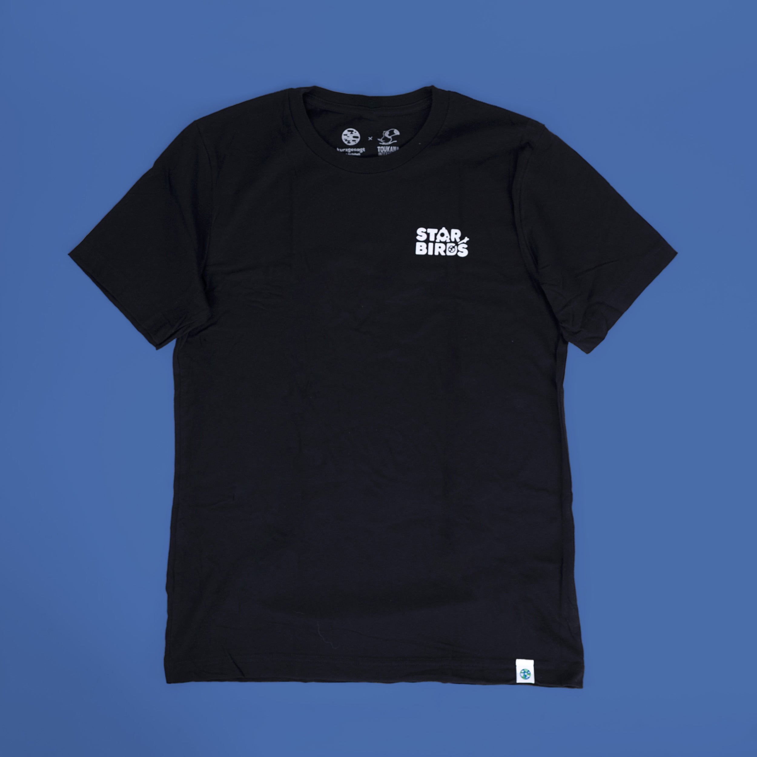 • Minimal Star Birds logo on the front, colorful asteroid base design on the back