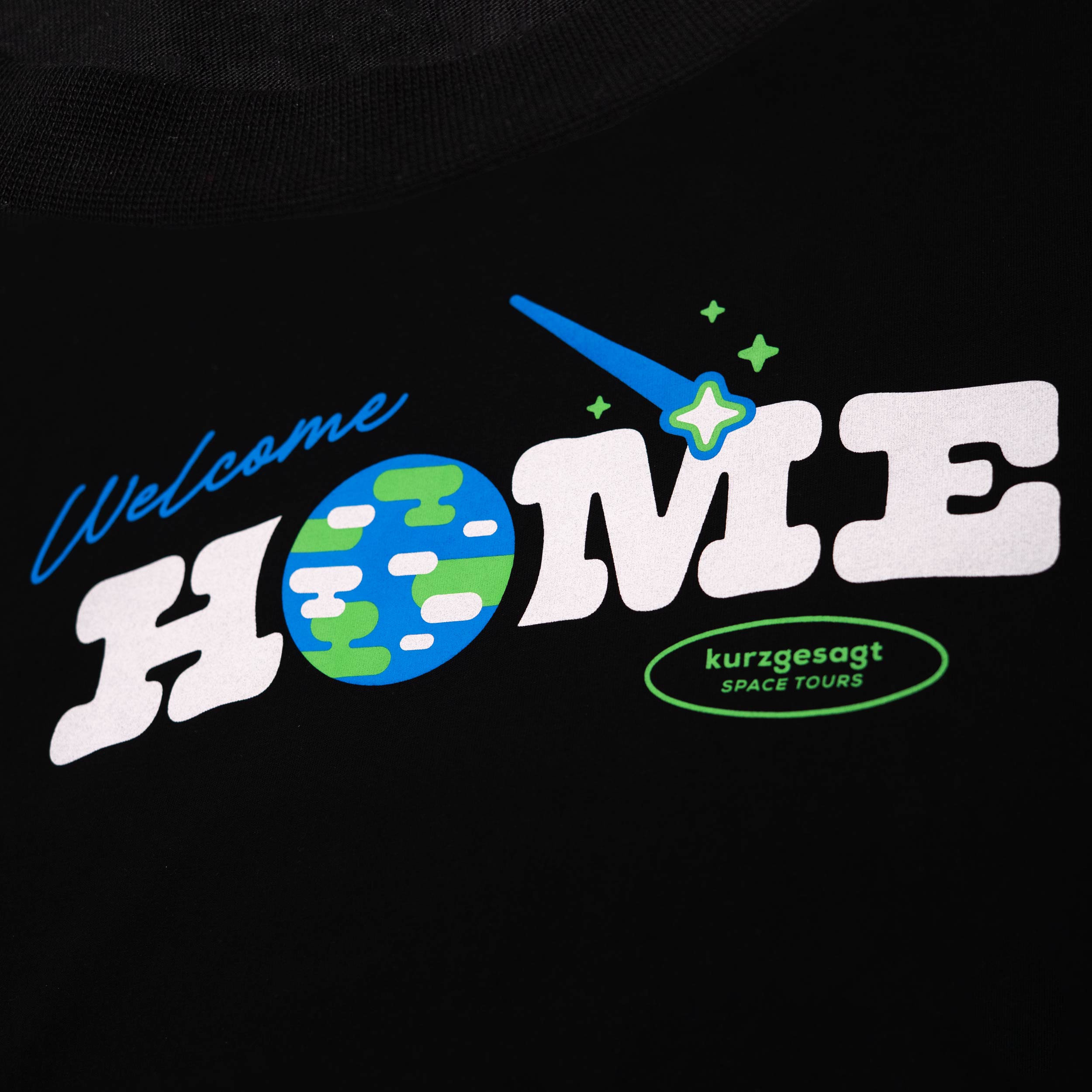 • High quality screen print of "Welcome Home" slogan and Earth design